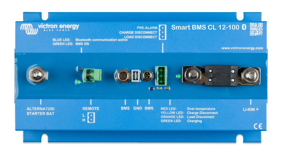 Το Smart BMS CL 12-100 είναι ένα σύστημα διαχείρισης μπαταριών για έξυπνες μπαταρίες Victron λιθίου-σιδήρου-φωσφορικού (LiFePO4). Έχει σχεδιαστεί ειδικά για συστήματα 12V με γεννήτρια 12V.